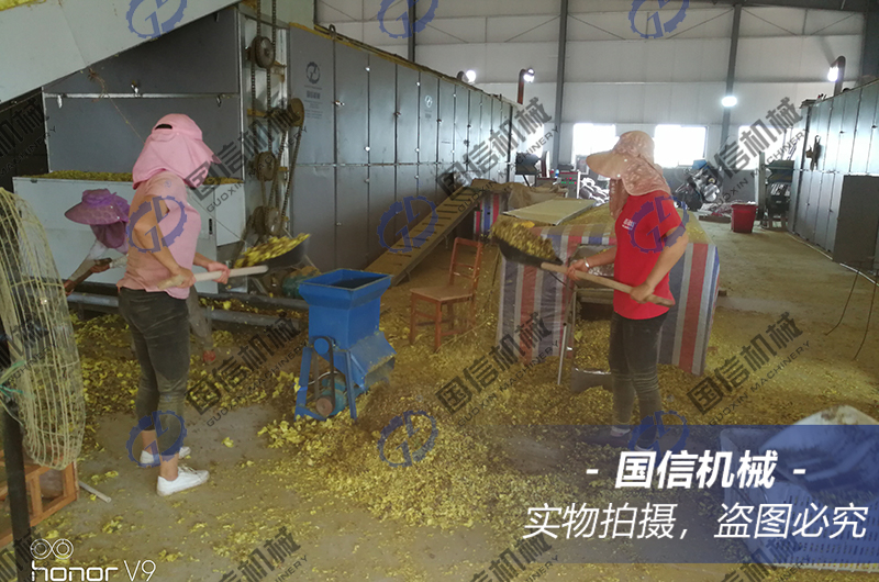使用這種動態(tài)烘干的好處是:烘干非常的均勻。一般情況下,我們的大型網(wǎng)帶烘干機內部有4到6層循環(huán)網(wǎng)帶,也就是說,在烘干過程中,黃蜀葵會經(jīng)過4至6次的循環(huán)翻轉,熱風自下而上穿透烘干時,可以讓黃蜀葵的每個部分都受到熱風的吹拂,使花朵的各部分水分散發(fā)均勻,成品干貨的品質統(tǒng)一。