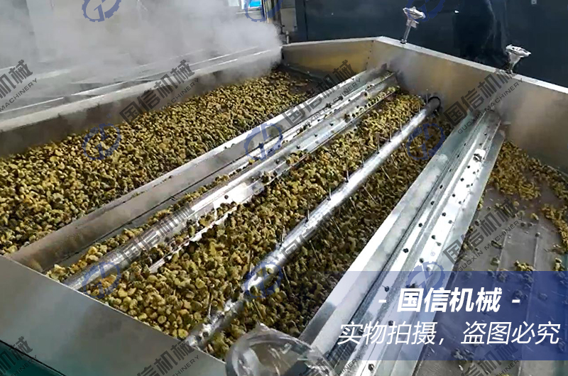 全自動大產量菊花烘干機優勢介紹 1、菊花烘干過程干凈衛生,網帶采用304不銹鋼材質,避免菊花在烘干過程中二次污染。