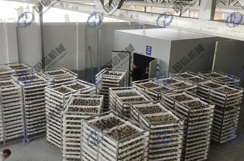 廣西南寧木瓜種植戶來鄭州國信烘干機廠家試機并考察木瓜絲烘干