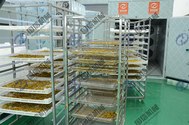 烘干房是一種可以進(jìn)行連續(xù)生產(chǎn)的干燥設(shè)備,主要是由烘干房、空氣能熱泵、風(fēng)機(jī)、小推車(chē)、托盤(pán)等構(gòu)成,具有較強(qiáng)的烘干能力,干燥后的黃花菜色香味正,賣(mài)相十足。