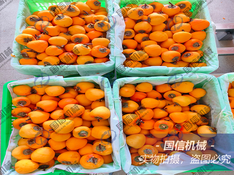 烘干一道工序:柿果進入烘室后,迅速提升溫度至40℃~50℃,使柿果中的乙醇脫氯酶活性處于高狀態,以使柿果內呼吸速度提高,快速完成軟化、去澀和部分脫水(約25%),持續烘干時間視柿果大小和成熟程度而定,約12小時左右。烘干柿子時,防霉很重要。稍有不慎,就會導致整個烤房的柿子在幾個小時內發霉腐爛。因此,烘烤中的相對濕度要保持在70%以下,這樣可以有效地預防發霉。