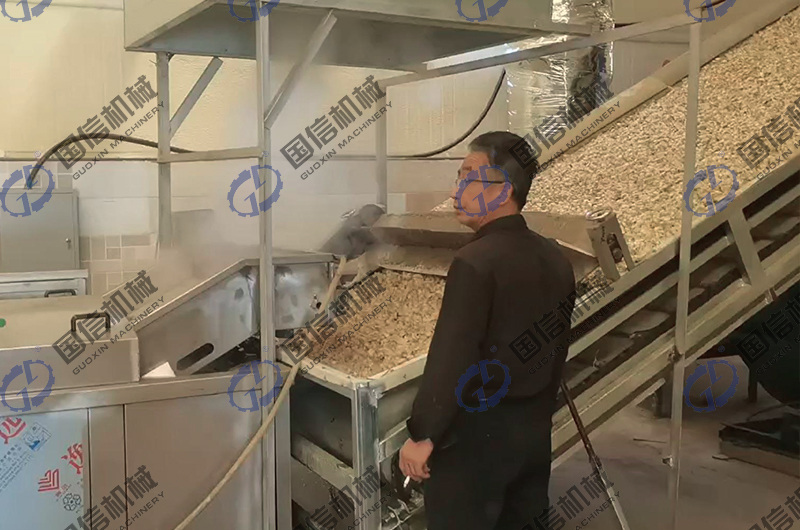 高溫煮燙:煮燙是干燥加工的關(guān)鍵環(huán)節(jié),是著色保質(zhì)的保障。高溫煮燙可在不銹鋼(預(yù)煮)漂燙殺青機(jī)中進(jìn)行,漂燙蒸煮機(jī)的蒸煮時(shí)間溫度都可以調(diào)節(jié),蒸煮過程中不需要人員操作,省工省力!百合分季的含淀粉不一樣,蒸煮時(shí)間也不一樣,煮燙的時(shí)間以原料略軟,掰斷鱗片時(shí)有清脆響聲,有較強(qiáng)彈性為度。 高溫煮燙的操作要掌握好,熱燙溫度和時(shí)間達(dá)不到,在干燥過程中就會(huì)氧化褐變;如果熱燙過度,鱗片煮爛,干燥后則鱗片容易破裂或形成魚鱗片,色澤加深,影響制品的外觀質(zhì)量。