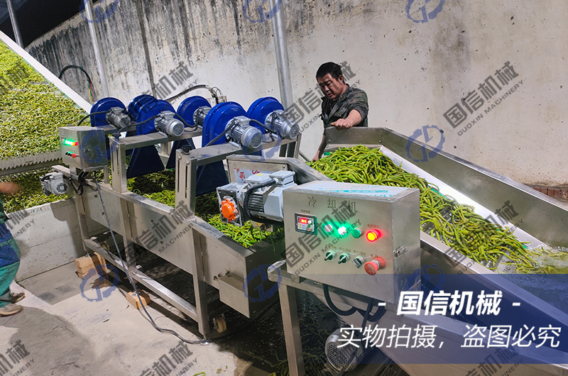 今天給大家介紹的是我們云南客戶豆角烘干加工現(xiàn)場,烘干豆角的流程需要把新鮮的豆角通過漂燙機進行殺青護色,然后通過輸送帶放入烘干設備內,經過數(shù)小時的均勻排濕烘干后的干貨成色非常好很受市場歡迎,客戶選用的是大型連續(xù)式清洗殺青烘干設備,設備是自動化生產全程只需一兩人工,烘干成本低效率高非常適合大型農業(yè)加工使用。